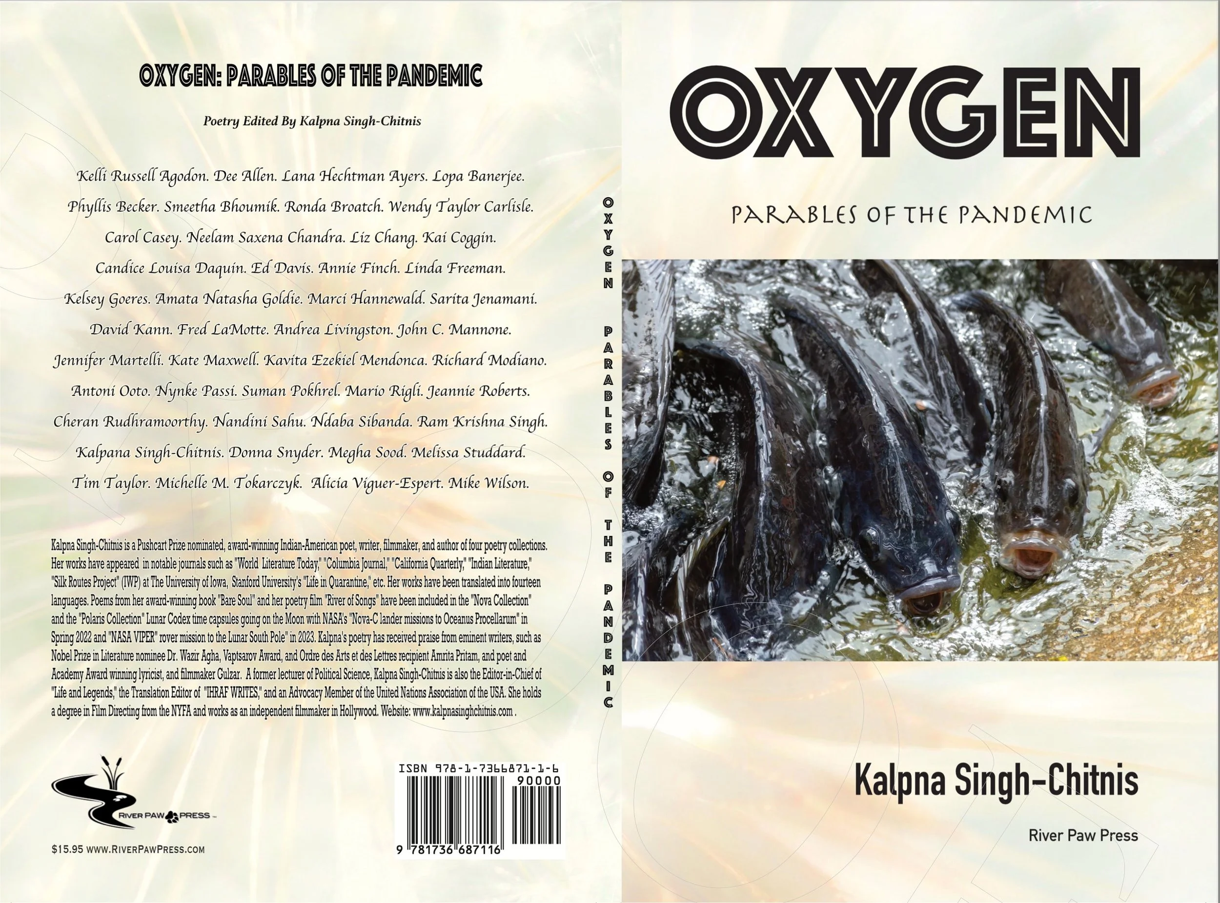 In May, 2022, we had the book launch of Oxygen: Parables of the Pandemic, just out from River Paw Press, edited by Kalpna Singh-Chitnis. Kalpna was our guest in our Spring ‘21 residency. The launch was celebrated online with a public reading.