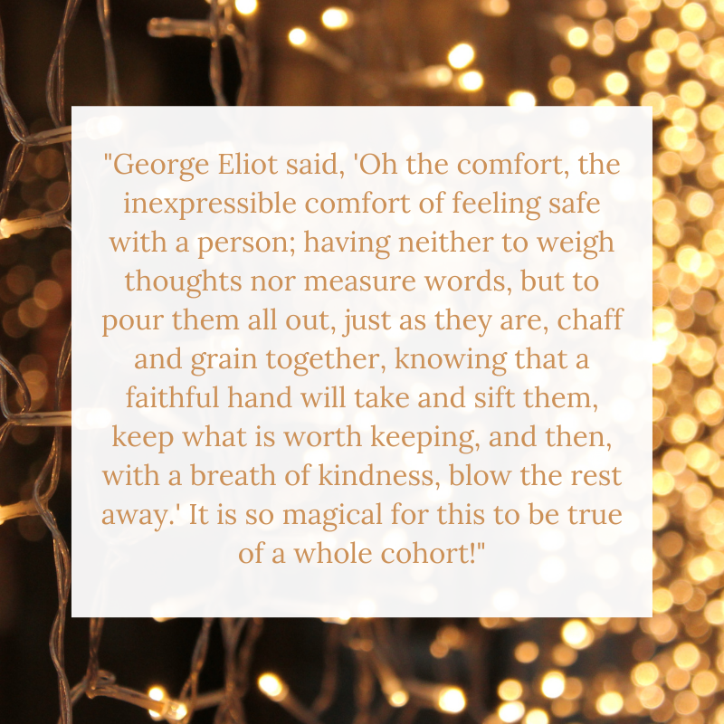 “Just reflecting on what a magical cohort and community this is. I can imagine life without textbooks, but I cannot imagine life without all of you. So grateful”