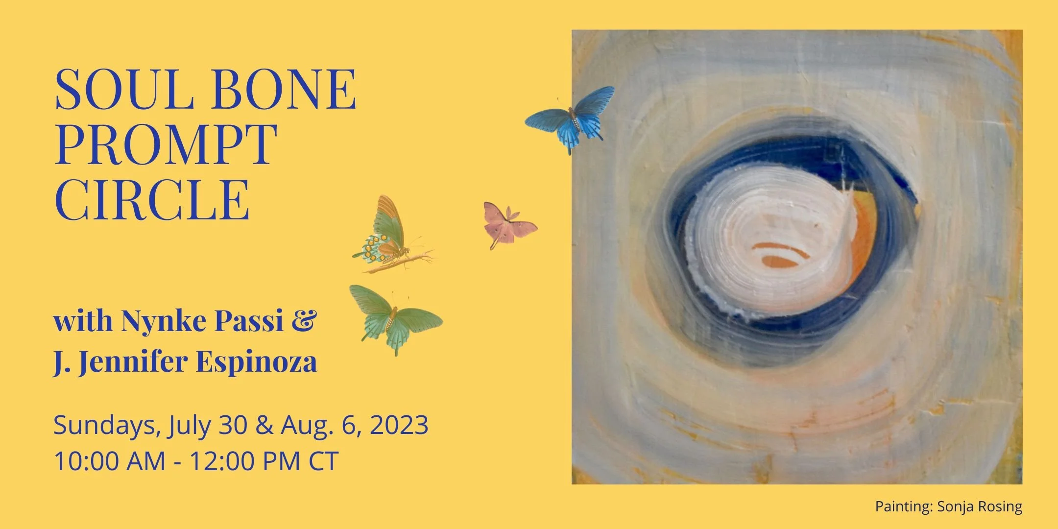 Cost: $30 per session or $60 for two sessions plus prompt handouts. Full or partial scholarships available for early registration (5 scholarships per session). Held online via Zoom. Learn More →